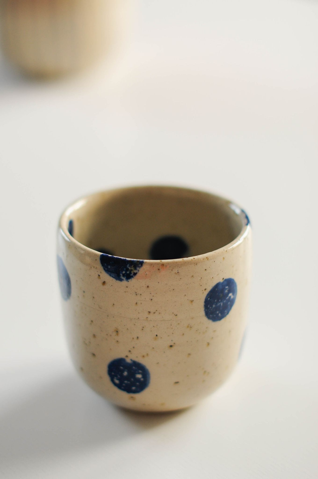 Dieser Becher wurde an der Töpferscheibe gedreht und bei 1230 Grad gebrannt. Die Glasuren entsprechen den Anforderungen für Bedarfsgegenstände. Der Becher ist sowohl spülmaschinenfest als auch mikrowellengeeignet. Um länger Freude an dem Produkt zu haben, empfehle ich jedoch die gute, alte Handwäsche.