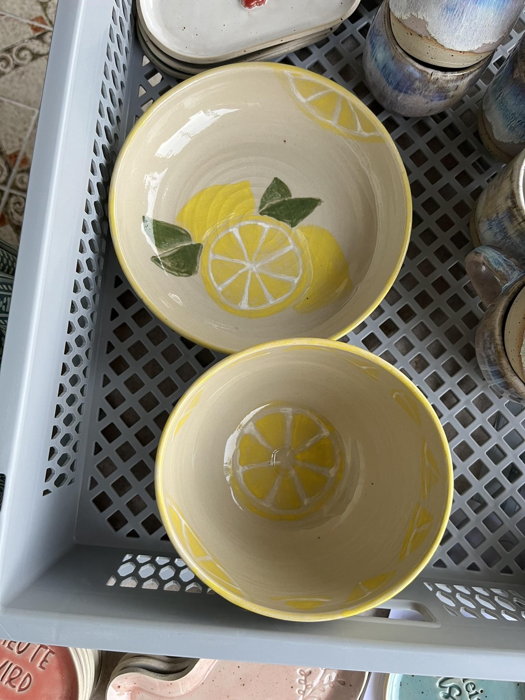 Sobald die Stücke wieder durchgetrocknet sind, werden sie glasiert. Glasuren können unterschiedlich aufgetragen werden. Mal werden sie in großen Eimern getaucht, oder aber mit Pinsel in mehreren Schichten aufgetragen. Keramik, die für den Gebrauch von Lebensmittel gedacht ist, darf nur mit lebensmittelgeeigneten Glasuren glasiert werden. In Deutschland müssen diese vor dem Verkauf in einem Labor getestet werden. Wenn Keramik und Glasur einwandfrei sind, erhält man für diese Glasur eine Konfirmitätserklärung und darf diese somit in den Verkauf geben.