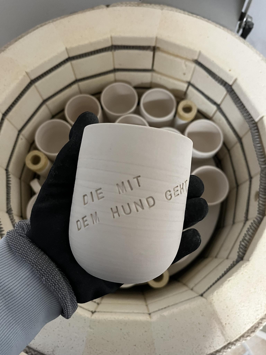 Nach dem glasieren kommen die Stücke ein zweites Mal in den Ofen, in den sogenannten Glasurbrand. Hier unterscheidet sich der 2. Brand in zwei Dingen zum 1. Brand: